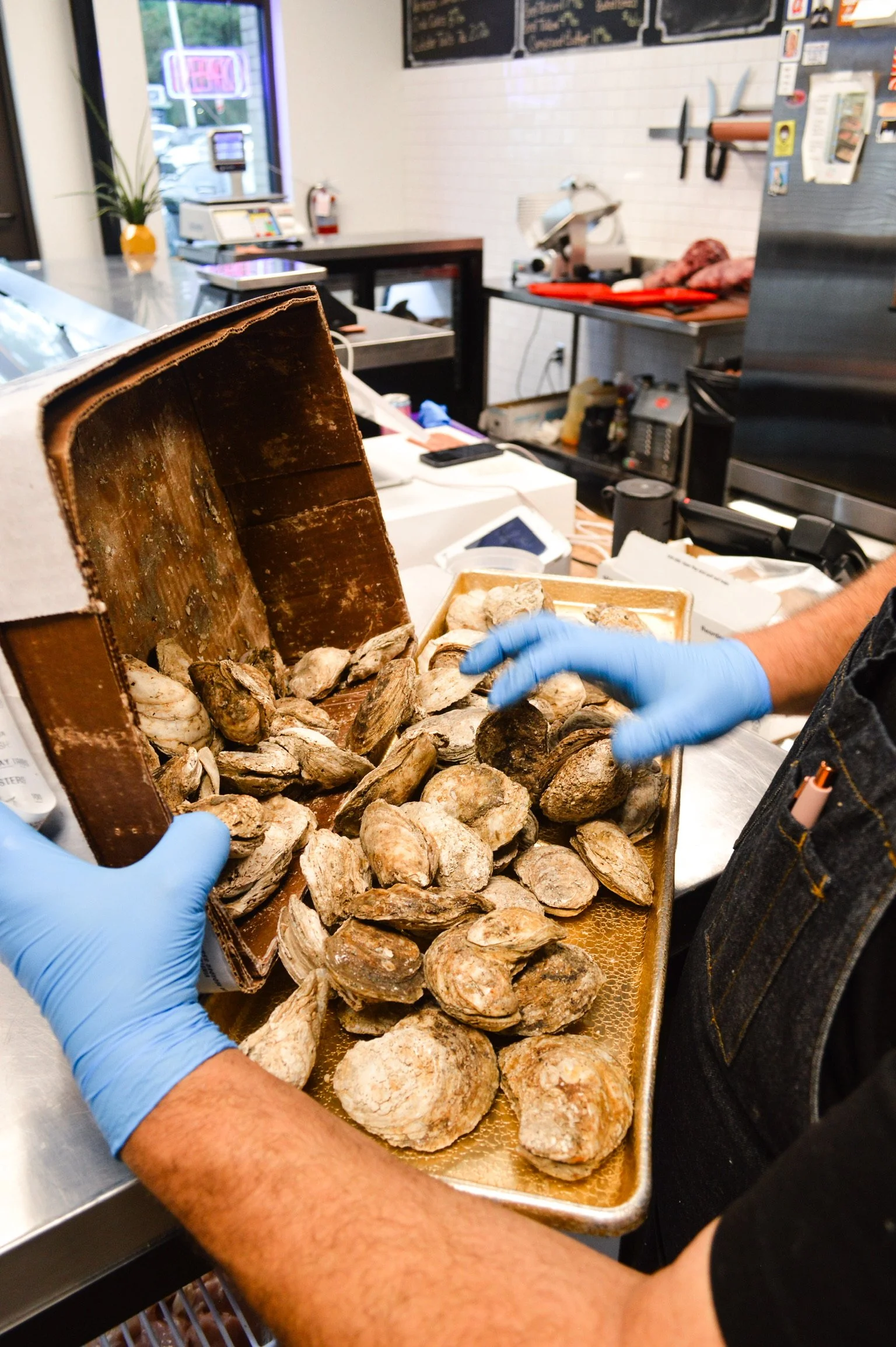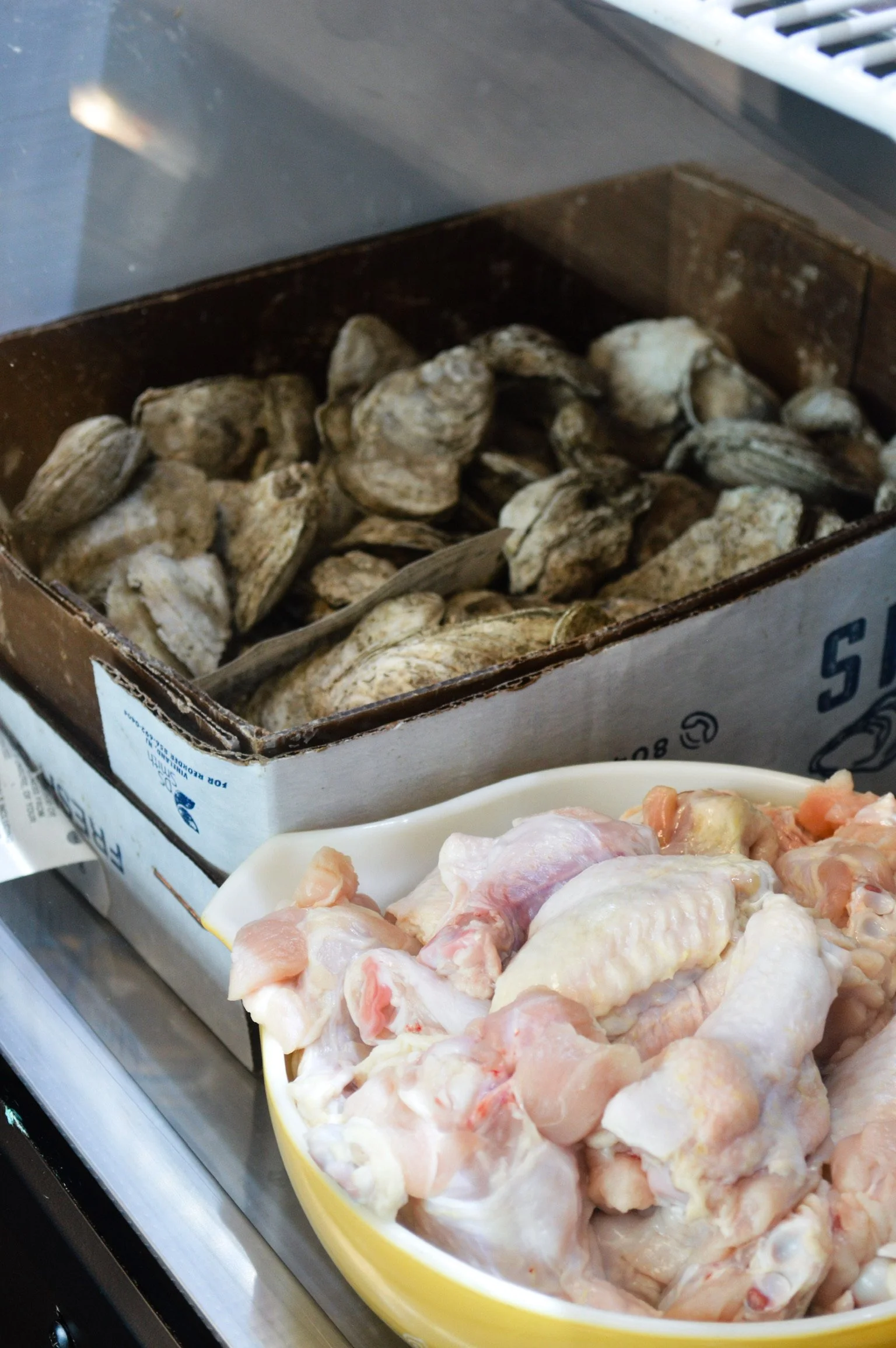 We keep a few seafood items in the shop, but you can also preorder! Order by Wednesday, pick up Friday. The freshest stuff we can get our hands on — lobster, crab, you name it.